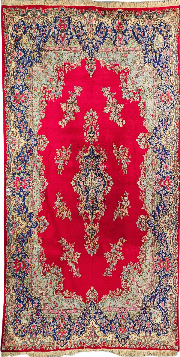 The city of Kerman today has a pleasant atmosphere with mosques, blocks with bazaars and tea houses. The carpet manufacturing has long been an important industry and carpets from Kerman are easily recognized. The ground colour is often red, and the pattern is dominated by a centrally placed medallion together with a wide border filled with flowers. The carpets that were manufactured before World War I usually have different motifs, such as trees, animals and figural motifs. The material as well as the design is usually of good quality.